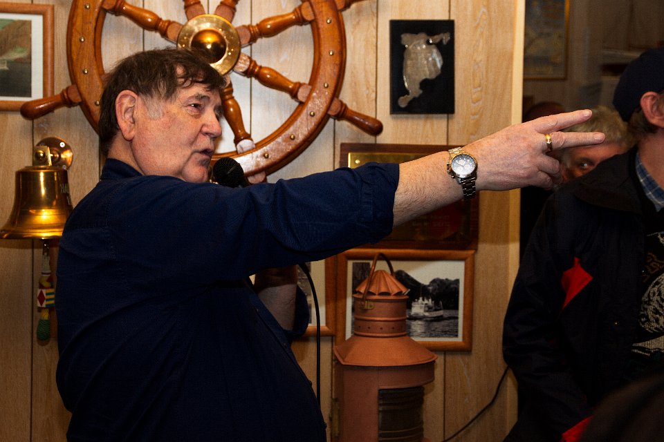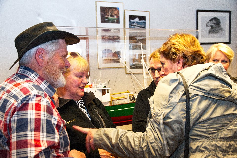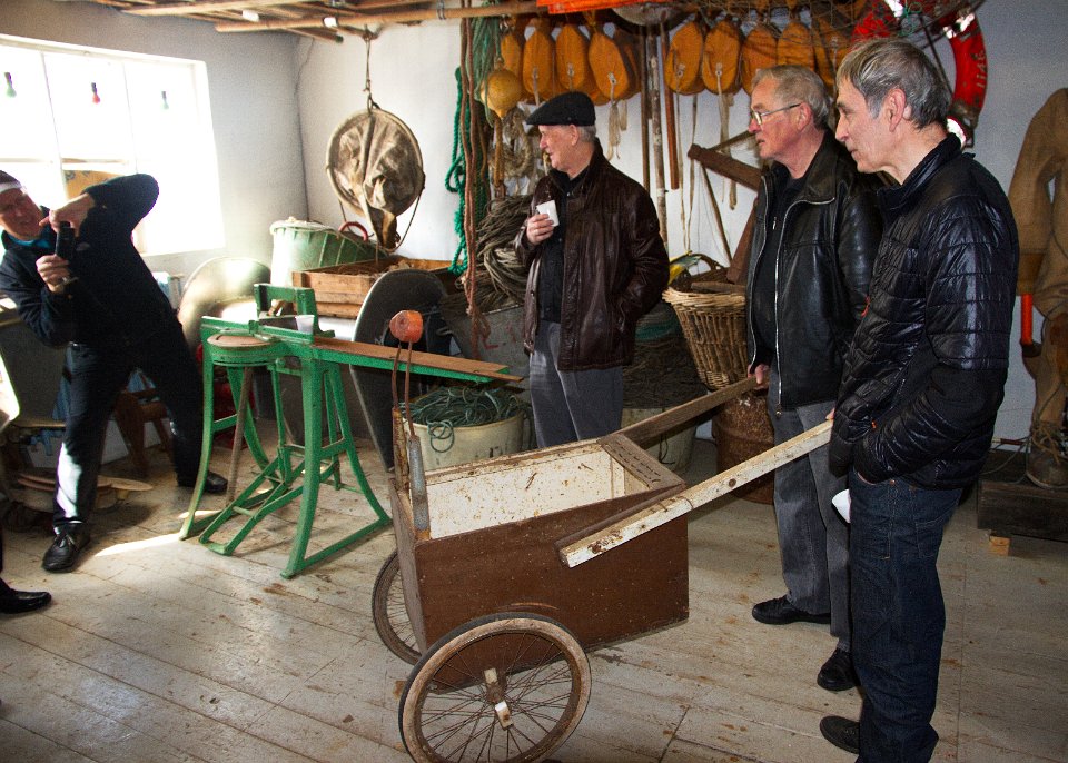 Þórður Rafn útskýrir hluti í safni sínu en þar hittist hópurinn