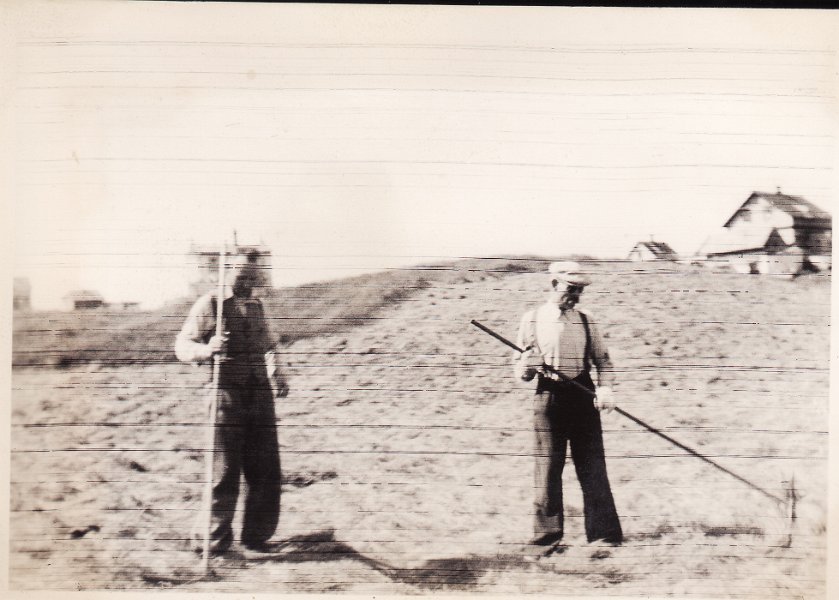 16 Heyskapur á Hofstúninu á stríðsárunum. Hjössi (Hjörtþór Hjörtþórsson) og Þorlákur Sverrisson