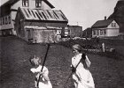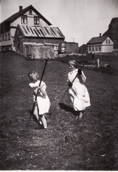 21 Sjöfn Bjarnadóttir og amma hennar, Sigríður Jónsdóttir. Hof og Eiríkshús í baksýn
