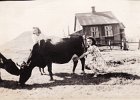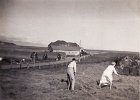 20 Bjarni Guðjónsson og Sigríður Jónsdóttir, amma mín. Bjarni var tengdasonur hennar. Takið eftir herbröggunum og þurrkhúsinu. Hænsnakofinn í kartöflugarðinum til hægri