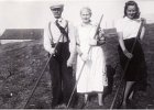 11 Heyskapur á Hofstúninu á stríðsárunum. Sigríður Þorláksdóttir, faðir hennar, Þorlákur Sverrisson, og Hjörtþór (Hjössi) Hjörtþórsson